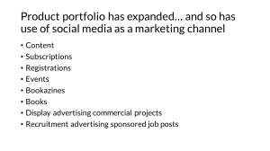 - digital featured content amplification group – paywall or gated content continues to drive subscription sales. This cross functional group consisting of Feature editor, Digital editor, Deputy art editor, Deputy chief sub editor, Audience development executives and myself work together to maximize those subscription sale opportunities.