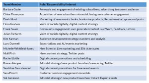 - Clarity of roles and understanding where unique value is added makes it easier for team members to move forward on their individual work, while understanding the network of stakeholders around them. As teams grow in size, location, skills and remits it is even more important that this growth is translated into actual business growth rather than lost in duplication, inefficiency and confusion. At the start of the year I began a consultative process with other senior marketing stakeholders in defining our team objectives and PDP goals for individual team members to ensure they were aligned. Our team PDP goals as entered in 2016 are shared. In the context of my role change, I moved from having 2 direct line reports to moving to a wider consultative role within New Scientist across our marketing, editorial, art, technology, sales and events teams. So while at the moment I don’t have direct line reports for PDPs, I have expanded my remit to other functional areas, and am currently in the recruitment process for 2 newly relocated brand marketing roles.
